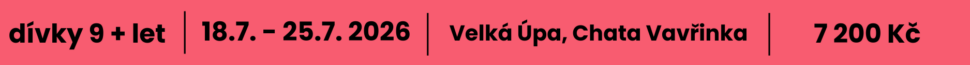 Letošní tábor tě přenese přímo do tohoto magického příběhu. Společně s Agnes a Bobo budeme stoupat k zamlženému vrcholu a plnit tajemné úkoly ducha hory Gorma. Čekají nás dobrodružné zkoušky, které prověří tvou odvahu, trpělivost i schopnost naslouchat vlastnímu srdci. Vyzkoušíme si, jaké to je dělat zdánlivě nesmyslné věci, které prověří naši trpělivost a naučí nás radovat se z každého okamžiku. Postavíme se záludnému Našeptávači – hlasu, který nám bude podsouvat strach a pochybnosti. My ho ale společně překonáme a dokážeme mu, že jsme dost silné a dobré takové, jaké jsme!